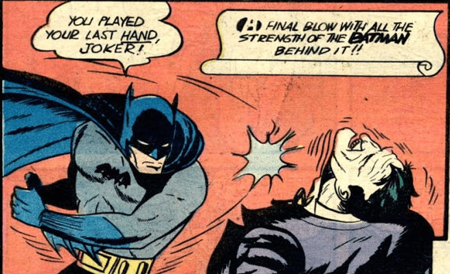 Уже здесь видны все ключевые черты ставшего культовым злодея: отсутствие эмпатии, незаурядный ум, зеленые волосы и ужасающая ухмылка, позаимствованная у героя Конрада Фейдта из экранизации исторического романа Виктора Гюго «Человек, который смеется».