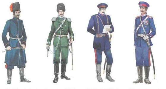 Вот такие цветовые различия формы подчеркивали традиции конкретного казачьего войска. Причем характерно, что чем старее было войско, тем больше у него особенных признаков по цвету элементов формы. Казачьи войска, учрежденные позже других, не отличались в этом отношении большим разнообразием.