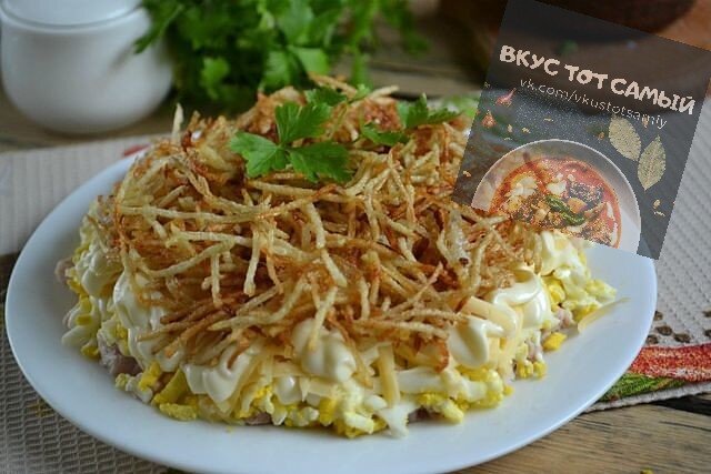 Можно выложить слои в любом порядке. Красиво будет смотреться тоненькая хрустящая картошка, выложенная поверх салата. Подписывайтесь на Наш Канал и Конечно на группу Вконтакте Нано-технологии! Клубника круглый год прямо дома. Еще рецепты: