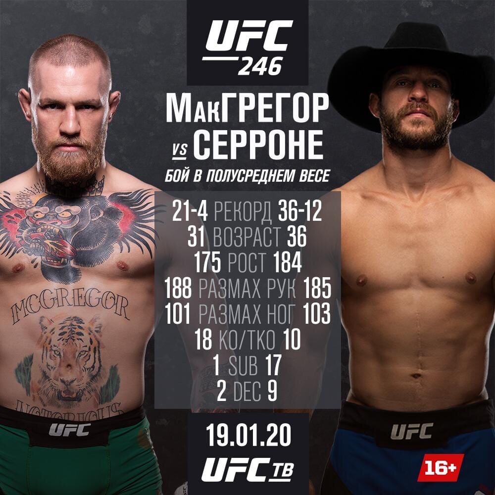 Сможет ли американский ковбой оседлать ирландского петуха? На мой взгляд шансы есть. Да, шансов было бы больше, если бы Дональд проходил подготовительный лагерь у Абдулманапа Нурмагомедова, потому что у него, на мой взгляд, лучший на текущий момент анализ соперника и построение тактики на бой. Но и сейчас шансы достаточно неплохие. Давайте разберемся. У Конора все плохо с кардио, а Серроне весьма и весьма терпелив. Сможет ковбой вынести атаки свежего петуха и остаться в силах контратаковать? Зависит от подготовки самого Макгрегора. Хоть штаб ирландца и говорит, что он находится в лучшей форме за всю карьеру, но доверять словам этого штаба... Вспомните слова Ноториуса за неделю до взвешивания, о том что он в недовесе, и посмотрите на его лицо на взвешивании! Как он выдохнул, когда вошёл в категорию. Ещё момент - борьба. Но будет ли ковбой идти в партер? Думаю захочет бой в стойке, но шанс в борьбе у него точно есть. И ещё одно: Дональд Серроне не забывает атаковать в корпус, что, как в