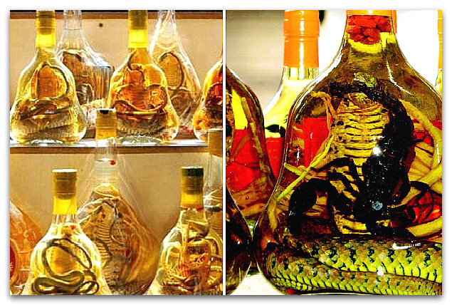 Вино со змеями и скорпионами Напиток готовится посредством настаивания пару месяцев в рисовом вине скорпионах и змеях. Со временем происходит реакция, и вино меняет вкус на странный и специфический. В Юго-Восточной Азии считают, что вино укрепляет иммунитет, поэтому в Китайской медицине употребляют как лечащее средство. Напиток можно приобрести как в магазинах, так и через интернет. Пиво «Un, Kono Kuro» В 2013 году пивовары из Японии на праздник «1 апреля» в пиво «Un, Kono Kuro» добавили кофейные бобы, но перед этим бобы побывали у слона в пищеварительной системе. Из-за разрушения протеинов, в итоге пиво получило неоднозначный вкус, вкус горечи. До этого в 2012 пытались приготовить само кофе из данных бобов. Напиток из ласточкиных гнёзд «Это удивительный напиток, приготовленный в Китае, он не только освежает, но и говорят, что лечебный!