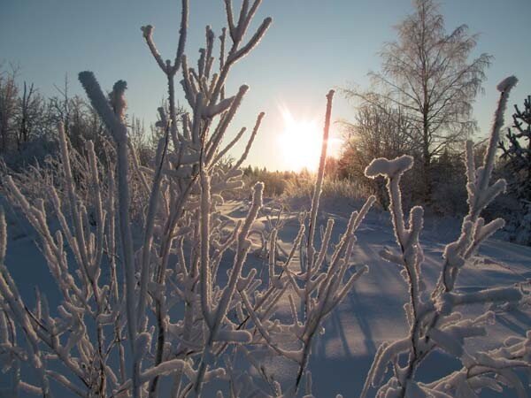 Дело в том, что сильно подморозило, и все деревья и травинки стояли в инее – удивительная красота! Мы заехали на Вологодский святой источник (4 км) от трассы Вологда-Кириллов – лес там был сказочный, как в детском фильме про Морозко. Там 2 источника, купальня и метрах в 500 - огромный камень, к которому все ходят загадывать желание.