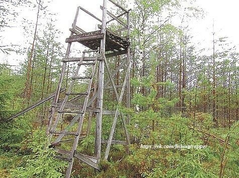 В составе этой вышки желательно предусмотреть лесенку — она помогает комфортно забираться наверх людям довольно грузным, и, конечно, саму смотровую площадку. Она должна быть усилена вторым слоем таких же досок или более толстыми, чтобы «пол под вами не провалился».