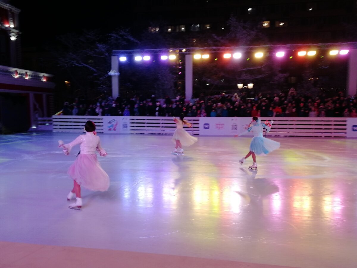 Только что прочитала, что ледовые шоу Чернышева и Плющенко продолжатся до конца января. Ну чтож, мы побывали на одном. Дело было в выходной, и, пытаясь попасть на сеанс в пять часов, мы приехали в четыре на тверскую, новопушкинский сквер. Очередь оказалась огромна, и когда перед нами оставалось человек 30, объявили, что билеты закончились. Но есть билеты на белоснежку в 19.30. Ну, простояли мы уже почти час, делать нечего, продолжили стоять. Наконец то купив сторублевые билеты, мы пошли греться, решив, что на представление придём пораньше - билеты то без мест. Пришли за полчаса - очередь показалась небольшой, но оказалось, что люди просто оставляли одного человека из компании стоять, а сами уходили, так что вышло в три раза больше людей. И зря мы пришли рано - детей все равно пускали вперёд, а взрослых сдвигали назад. Само шоу нам понравилось. Оказалось, белоснежку играла Аделина Сотникова. Правда, особо ничего интересного она не показала, ибо...ну сто рублей) покрутил ась один раз з