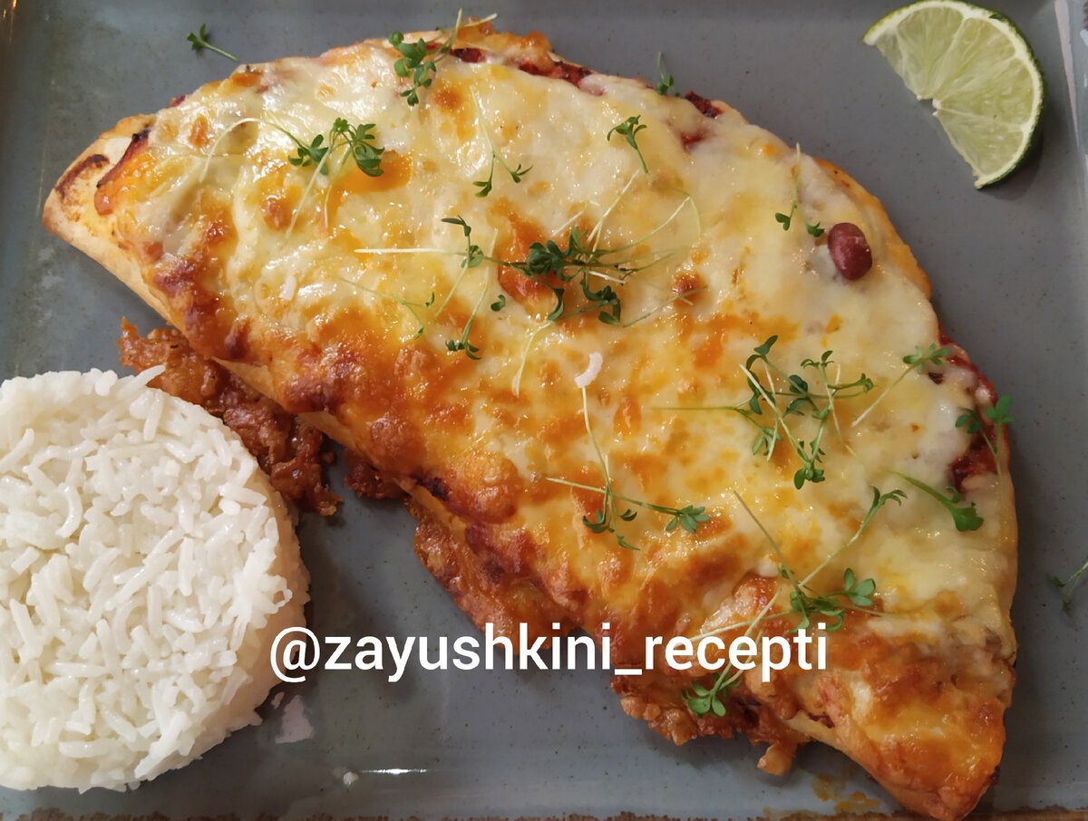 Энчилада - традиционное мексиканское безумно вкусное блюдо. Пряное, ароматное, сытное именно так его можно охарактеризовать. Как всегда делюсь быстрым рецептом, с которым справится даже ребенок. Традиционно это блюдо подают с отваренным рисом, но на мой взгляд, оно совсем не нуждается в гарнире. Ингредиенты: 400 г фарша ( говяжий или говядина+свинина) 100 г консервированной красной фасоли 2 тонкие кукурузные лепешки ( можно использовать и пшеничную Тортилью) 100 г твердого сыра 30 г сыра Пармезан ( по желанию) 30 г томатной пасты 1 луковица Щепотка сухого чеснока ( по желанию) Щепотка соли Черный перец по вкусу Приготовление Лук очистить, нарезать и обжарить на предварительно разогретой и смазанной растительным маслом сковороде. Когда лук станет золотистого цвета, добавить фарш, хорошо перемещать так, чтобы не было больших комков. Добавить немного воды, накрыть крышкой и тушить 10 минут. Томатную пасту развести небольшим количеством воды и добавить к фаршу. Посолить, попе