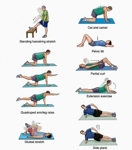 Кошка и верблюд. Опуститесь на четвереньки. Упор на колени и выпрямленные руки. Ладони должны находиться прямо под вашими плечами. Полностью расслабьте спину и живот, пусть он даже немного провисает. Задержитесь в этом положении на 5 секунд. Затем выгните спину вверх и снова задержитесь на 5 секунд. Выполните по 10 повторений.