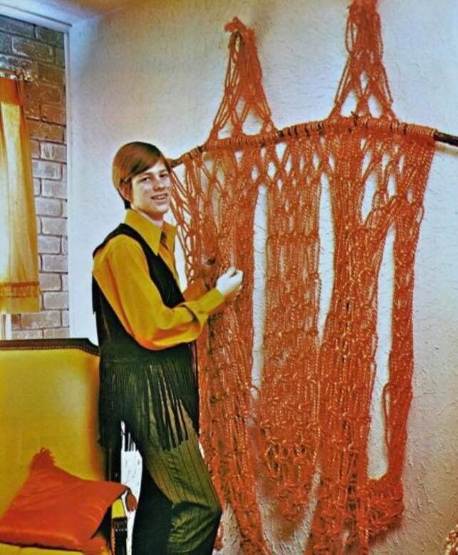 В некоторых семьях до сих пор можно видеть популярные предметы сделанные своими руками или купленные 50 лет назад. Эти предметы можно найти в квартире вашей бабушки. Получив такую в наследство люди просто выкидывают подобные вещи на помойку. Макраме Мода на макраме пришла с культурой хиппи. К хиппи в СССР был отрицательное отношение, но макраме под раздачу не попало. О нем рассказывалось в приложении к журналу "Работница", где были даны основные приемы. С этого и началось. Плели панно на стену, кашпо для цветочных горшков, сумки и даже украшения. Теперь такие вещи стали редкостью, хотя их все же можно найти как старые на развалах, так и новые на Etsy. Книг по макраме немного как бумажных так и электронных, в том числе букинистика и переиздания. Поделки из природных материалов В 70-е практически в каждой семье был либо букетик из сухоцветов и веток либо коряга, найденная в парке и любовно покрытая лаком. Особой популярностью пользовались всякие тростники, которые устанавливали в громоз