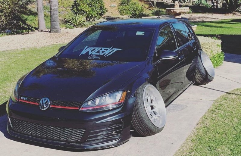 Тюнинг автомобилей - многообразная вещь. Одни вносимые в них изменения действительно приносят пользу и вносятся с какой-то целью (например, в гоночные авто - для улучшения скорости, аэродинамики и т.д.), другие не несут никакой нагрузки, кроме чисто эстетической (вам, наверно, доводилось видеть автомобили с "занижением", чьи хозяева, по-видимому, думают, что оно придаёт им спортивный вид). А некоторые не имеют ни практической, ни эстетической ценности. Такой тюнинг сделал владелец одного из многочисленных Volkswagen Golf. Первое, что бросается здесь в глаза - это необычно "разъехавшиеся" во внешнюю сторону колёса. Да, с углом развала явно перестарались! Следом обращаешь внимание на всё ту же характерную "заниженность" в погоне за якобы спортивным стилем. Одно из трёх: либо пружины были подрезаны (что вряд ли, такое, как мне кажется, обычно практикуют в России, этот же автомобиль замечен в Калифорнии), либо поставлены регулируемые амортизаторы, либо пневмоподвеска. Автомобиль снят на в