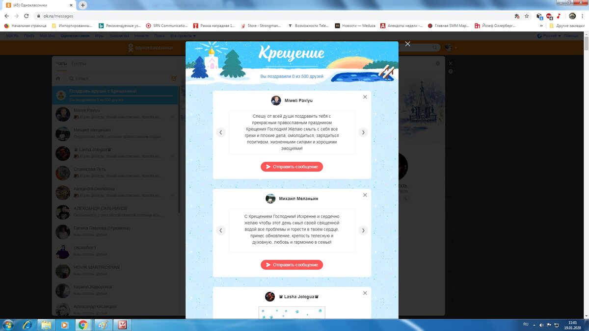 Все последние дни, при попытке зайти в сообщения загорается экран который требует, что бы я начал поздравлять людей, с непонятным мне праздником.Я вижу в этом наглую попытку группы людей владеющих и администрирующих данный , социально- значимый ресурс, навязать мне свою веру, что грубо нарушает Конституцию РФ, гарантирующую мне свободу совести. Прошу правоохранительные органы проверить владельцев и администраторов социальной сети ОДНОКЛАССНИКИ на проявления экстремизма.