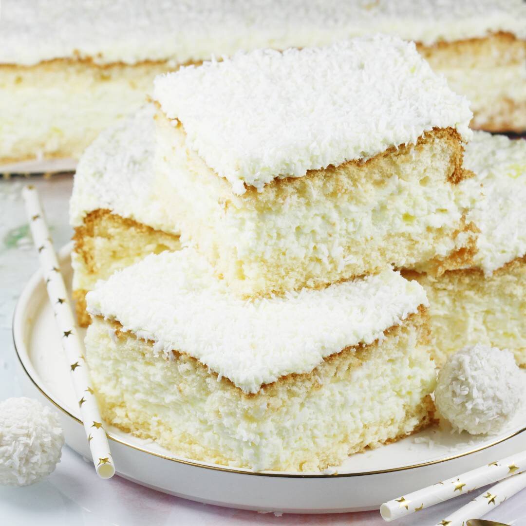 Рецепт супер простой, а торт надежный, красивый и супер вкусный. Я настоятельно рекомендую! Ингредиенты Для бисквита 6 средних яиц, 3/4 стакана пшеничной муки, 3 столовые ложки картофельного крахмала , полстакана сахара. Ингредиенты для кокосовой массы 2 полных стакана кокосовых стружек , 400 мл йогурта натурального, 2 желе лимонные, 2 стакана кипятка, 500 мл. взбитых сливок ,6 столовых ложек сахарной пудры , 3 столовые ложки кокосовых стружек для украшения торта. Рецепт кокосового торта Бисквит для кокосового торта можно испечь даже на день раньше. Пшеничную муку и крахмал просеять вместе в отдельную миску. Отставьте на потом. Отделите белки от желтков. Поместите яичные белки в стеклянную или металлическую миску и взбейте их около минуты на высокой скорости. Не делайте этого, слишком долго, чтобы не проколоть пузыри воздуха. Когда белки превращаются в пену, начинайте добавлять сахар. Постоянно перемешивая, всыпать по одной столовой ложке сахара. После к