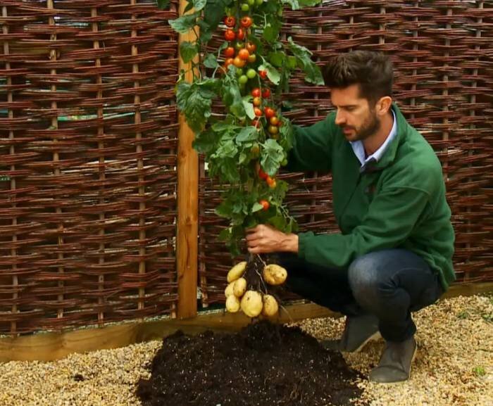 Помните сказку про «Вершки и корешки», когда крестьянин отдавал медведю то ботву, то корни после сбора урожая? Так вот, садоводческая компания «Thompson&Morgan» продает на британском рынке растение, на котором одновременно растут и «вершки», и «корешки» (картофель и помидоры).