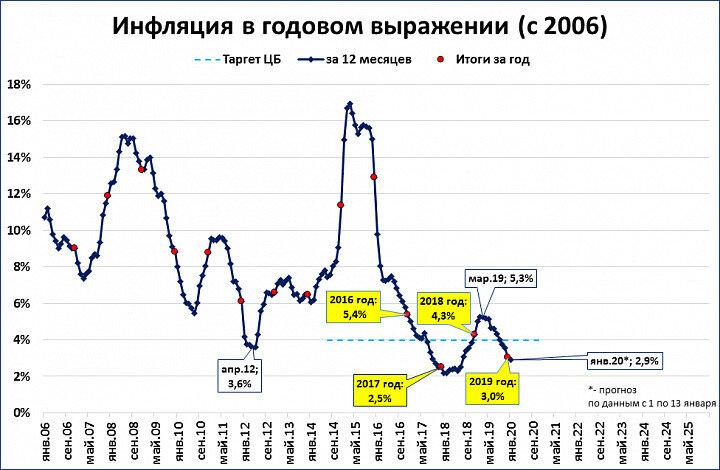Инфляция продолжает замедляться. С 1 по 13 января среднесуточный рост цен составил 0,028% (с 1 по 9 января темп был выше, 0,034%). Если такой темп продлится до конца месяца (пока темп снижается), то по итогам января мы получим инфляцию 2,9% за год. Низкая инфляция создаёт уникальный шанс для ЦБ наращивать денежное предложение путём операций на открытом рынке. Важно, чтобы ЦБ, вместо снижения ставки, прямо добавлял деньги в экономику. П.С. Для тех, кто использует Телеграм: Материалы этого блога можно на несколько часов (а иногда - дней) раньше прочитать на телеграм-канале "M2". В Телеграме его можно найти, введя в строку поиска @m2econ. Или воспользуйтесь ссылкой https://t.me/m2econ Подписывайтесь!