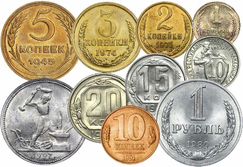 Первые монеты СССР, точнее, тогда еще Советской России, были выпущены в 1921 году. Их номиналы были такими – 10, 15, 20, 50 копеек и 1 рубль. Рублевые и 50-копеечные монеты штамповались из серебра 900-ой пробы, остальные из 500-ой. Серебряные монеты для обращения выпускались лишь до 1927 года. Для бюджета страны это было накладно, поэтому, приняли решение экономить на материале для изготовления монет. Мечтой любого нумизмата являются монеты СССР с датой «1947 год». В тот год в стране проводилась денежная реформа, Монеты были выпущены миллионными тиражами, но найти их практически невозможно. В чем же дело? По воспоминаниям министра финансов А. Г. Зверева, изменилось количество Союзных республик, поэтому, получилась путаница с количеством витков на гербе. Каждый виток означал одну республику. Весь тираж отправили на переплавку, но, отдельные монеты, предположительно, попали в обращение. Очень редкими являются и монеты 1958 года. Встречаются они чаще, чем монеты 1947 года, но цена состав