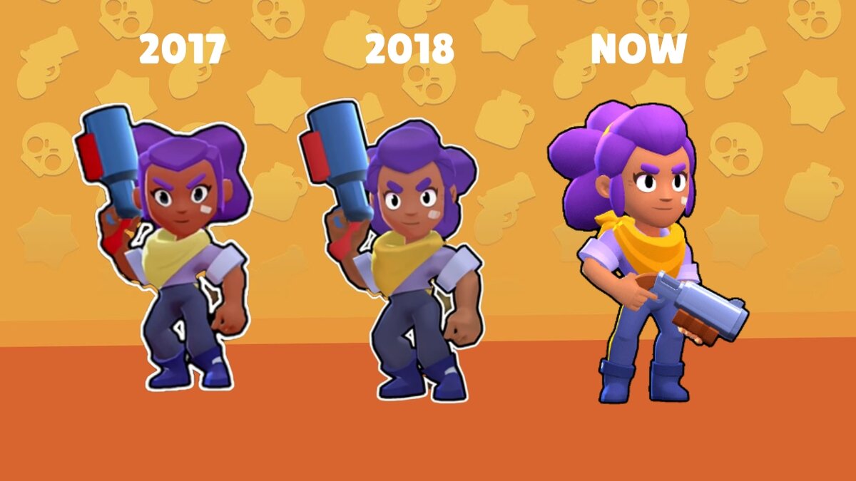 Другие модели персонажей Думаю многие видели старые модели персонажей, выглядят они и впрямь убого, но разработчики их изменили и теперь, как по мне, всё просто прекрасно. Снизу вы сможете увидеть, как выглядел каждый персонаж раньше, думаю комментарии тут будут лишними. Шелли Нита Кольт Булл Джесси Брок Динамайк Бо Эль примо Поко Дэррил Рико Пайпер Фрэнк Мортис Тара Спайк Ворон На этом всё, подпишитесь, чтобы не пропустить новые статьи по Brawl Stars, а также не забудьте поставить лайк! До встречи! Также добавляйте меня в друзья в Brawl Stars!