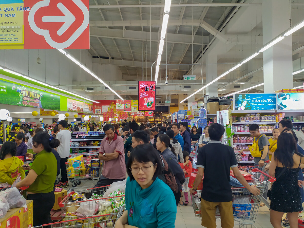 Поэтому будем проверять. Сегодня воскресенье, вечер, поехали в магазин Big C такое ощущение, что там был весь город. Народу просто жесть:) Почти все кассы работают и очереди тянутся зигзагами. Такое я тут ещё не видел, но мы всё-таки решили пройтись и купить немного продуктов. Потому что сыну нужны были хлопья, а в маленьких магазинах их дорого покупать.