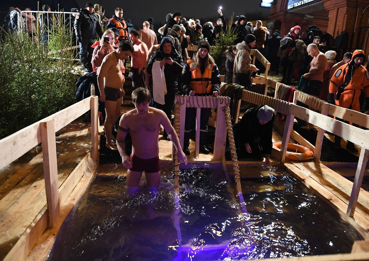 Такой вопрос возник у меня по той причине, что всё-таки город расположен на юге, в достаточно теплом климатическом поясе. И вопрос купания в проруби отпал сам собой как прорубь в незамерзшем море рубить? Хотя, говорят, бывали времена... Ну, так, будут купаться или нет? Интернет гласил, что и празднования, и купания будут. Мало того - организованные, подробно было указано, где они будут проводиться, с указанием времени литургий, водосвятий и собственно купаний. Кому интересно, можно посмотреть здесь. Могу ответственно заявить, что купания в этом, 2020 году, состоялись. Единственное отличие от привычных купаний в средней полосе в том, что помимо купелей и рек, они проводились еще и в открытом море. Ну, а в остальном никаких отличий, даже и температура, что в Москве, что в Сочи, была примерно одинаковая, небольшой "плюсик". С одной стороны хорошо, а с другой стороны, как в анекдоте про холодильник и чукчу, погреться не получится. Ведь когда на улице минус 30, то лезешь в эту воду с удо