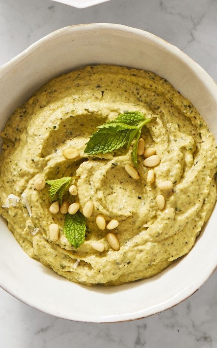 Пищевая ценность (На порцию): около 125 калорий, 11,5 г жира, 3 г белка, 4,5 г углеводов. Общее время: 0 часов 15 минут Нам понадобится: СПОСОБ ПРИГОТОВЛЕНИЯ 2. Переложите кабачки в блендер вместе с чесноком, тахини, лимонным соком и одной столовой ложкой мяты. При работающем на низкой скорости блендере, добавьте оставшиеся две столовые ложки оливкового масла, до получения однородной массы, при необходимости увеличивая скорость блендера. Добавьте орешек и мяты, перед подачей! Оригинальная статья: https://www.goodhousekeeping.com/food-recipes/easy/a28507046/zucchanoush-recipe/