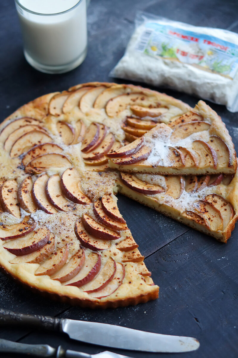 • Вылить тесто в форму, посыпать корицей и выложить произвольно тонкие дольки яблок.⠀