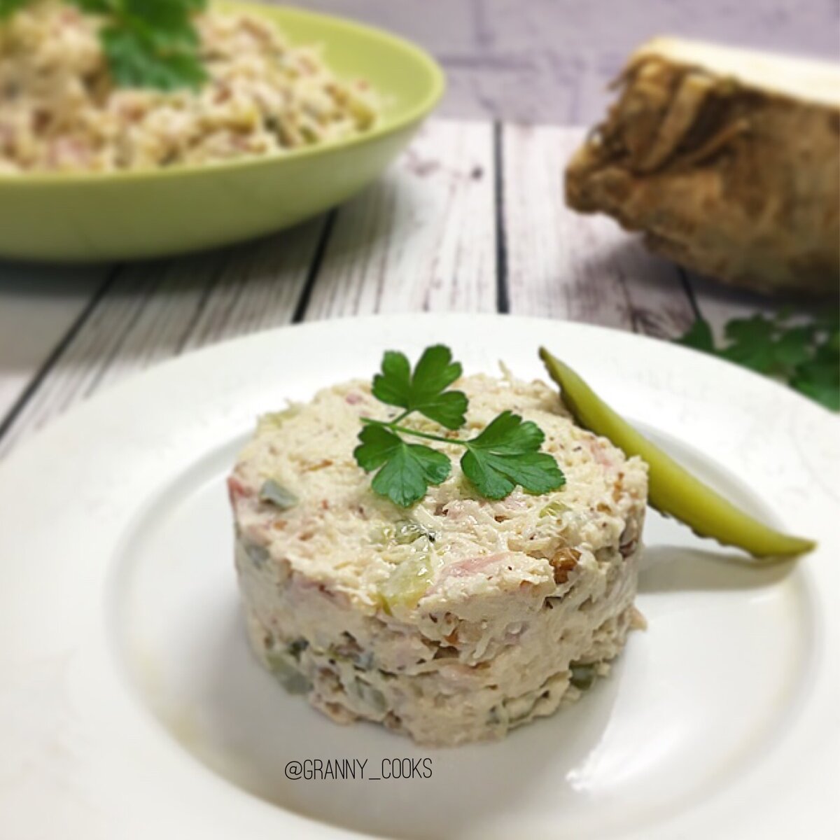 ВЫ ЗНАЛИ❓ Сельдерей – одно из самых полезных для человека растений. Причем полезны все его части – и зелень, и корни, и семена. Особенно ценится корень сельдерея, который содержит много биологически активных веществ и клетчатки, нормализующей работу органов ЖКТ, практически нет крахмала. Ингредиенты: 1/2 шт корня сельдерея 4 шт огурец соленый 300 гр курица копченая 50 гр сыр Йогуртовый соус Соль, перец Приготовление: Сельдерей натереть на мелкой тёрке, огурцы нарезать мелким кубиком, курицу мелко нарезать, сыр на мелкой тёрке. Заправить йогуртовым соусом или майонезом. Приятного аппетита!