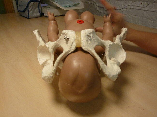 При рождении ребенок проходит через впускной канал — круглое отверстие в середине таза, которое снаружи никак не увидишь. Размер канала разный у всех женщин и не зависит от размера бедер.