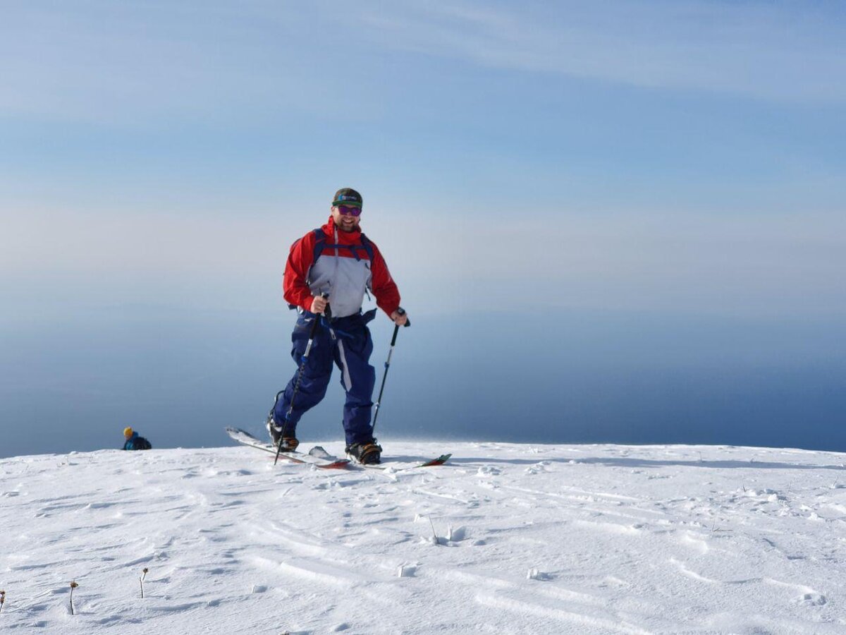 Есть у нас экзотическое развлечение "Сноуборд с видом на море". Это когда мы вооружаемся сплитбордами и горными лыжами и отправляемся скитурить на вершину горы Мамдзышха в Абхазии. Высота ее 1873 м и расположена в часе езды по извилистому серпантину от города Гагры. Говорят, когда-то тут думали возвести горнолыжный курорт, но закончилось все небольшим количеством домиков и балаганов, в которых местные проводят свои летние выходные. Нас же интересуют просторы свободные от леса. Здесь открываются виды на море, Адлер, Имеретинку и Олимпийский парк. От такого контраста сносит крышу. Мы на холодном снегу, а тут рядом теплое море! Цель с которой сюда приезжают горнолыжники и сноубордисты - попробовать себя в новом виде активности: подъеме в гору на камусе. Камус - это специальный многоразовый материал, который клеится к скользящей поверхности снаряда и позволяет отлично скользить вверх и при этом не скользить вниз. Таким образом мы расширяем свои возможности и получаем возможность подниматьс