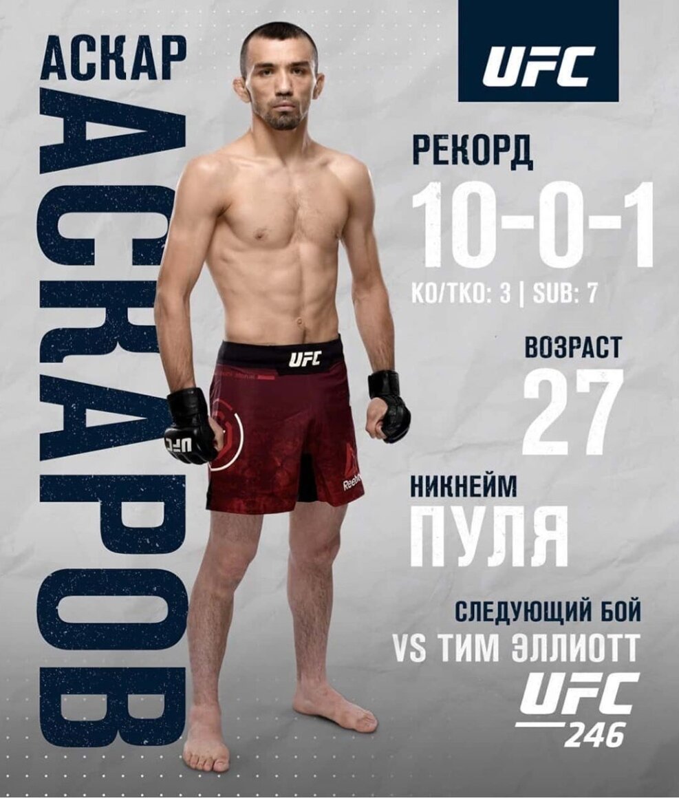 Смогут ли удивить бойцы из России? На турнире нашу страну будут представлять Аскар Аскаров (наилегчайший вес) и Алексей Олейник (тяжелый вес). Бывший чемпион ACB Аскаров проведет поединок против опытного американца Тима Эллиотта. И это будет лишь второй поединок для Аскара в рамках UFC. Его дебют состоялся в сентябре прошлого года. В поединке с Брэндоном Морено была зафиксирована ничья раздельным решением судей. На этот раз россиянин подготовился намного лучшей и должен проходить своего соперника. Эллиотт находится не в лучшей форме. Последние поединки он проводит неуверенно и проигрывает через раз. Последний раз он выступал в октябре и проиграл сабмишеном в первом раунде Дейвесону Фигуейредо. А вот Алексей Олейник проведет уже 72-й бой в карьере. По этому показателю ему нет равных не только в UFC, но и во всем мире. Мастер удушающих приемов проэкзаменует 33-летнего американца Мориса Грина, который в промоушене совсем недавно. Грин выступает с 2018 года, провел четыре боя, в которых о