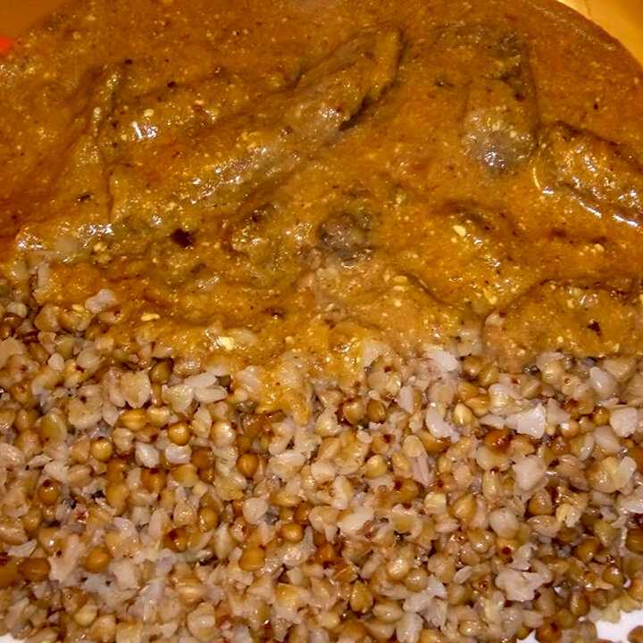 ✔ гречневая крупа для гарнира. В состав блюда должен входить жареный репчатый лук, но я, учитывая опасения многих участников группы, изъяла его из рецепта. Мне самой лук сахар не повышает, а те несколько грамм, что попадают в мою тарелку в составе тушёного блюда, навредить не могут. Я напишу, как готовить без лука, но и с луком - кому-то, может быть, понадобится и этот вариант. Процесс: Вообще-то, для бефстроганова нужна вырезка. Но вырезка - мясо дорогое, поэтому достаточно купить любую мякоть, лишь бы она была без жил и плёнок. Телятину вымыть, обсушить, нарезать поперёк волокон на плоские ломти толщиной полтора-два сантиметра.