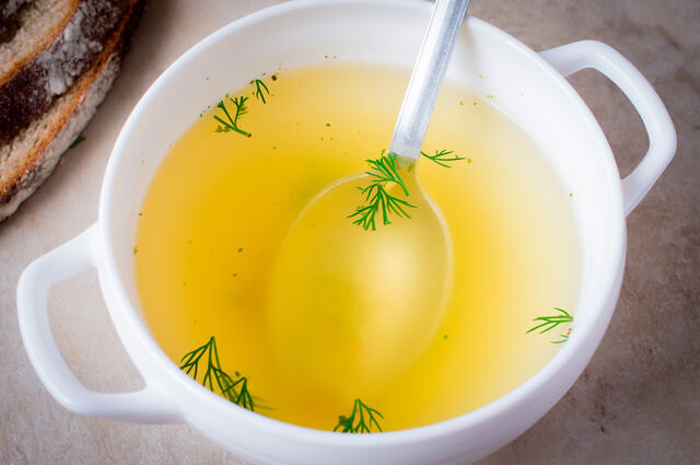 - 3. Продолжительность варки прозрачного бульона — от 2 до 2,5 часов. Готовое мясо вынуть и использовать для приготовления второго блюда. После того как бульон отстоится, снять сверху жир и процедить бульон сквозь частое сито или салфетку.