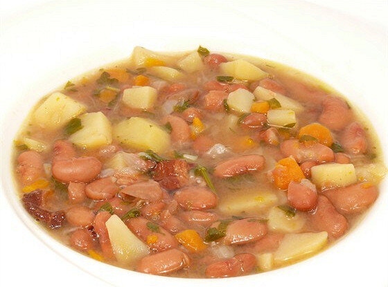 Больше специй, овощей и вкус понравится любому, будь это взрослый или ребёнок! Подходит для тех людей, кто находится на диете (хочется похудеть самостоятельно или по медицинским соображениям). Нам понадобиться: Фасоль или горох нужно перебрать, тщательно промыть и замочить в холодной воде (2 - 3 л воды на 1 кг), фасоль на 5 - 8 часов, горох - 3 - 4 часа, после чего варить в этой же воде при закрытой крыжке до готовности и без добавления соли. Картофель, нарезанный как вам удобно, положить в кипящую воду, добавить репчатый лук и морковь, нарезанный мелкими кубиками, соль и варить до полуготовности картофеля, добавить сваренные бобовые или горох с отваром и варить уже до готовности картошки. При подаче можно посыпать на суп мелко нарезанную петрушку. Примечание: Температура воды при замачивании бобовых должна быть не выше 15*С, в противном случае бобовые могут закиснуть.