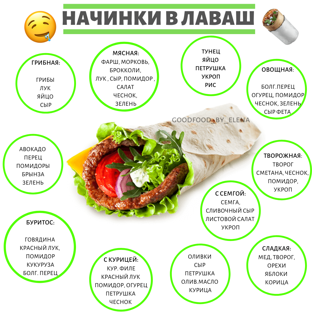 НАЧИНКИ В ЛАВАШ🌯 ЛАЙК💚 сразу на эту полезную шпаргалку! Готовьте быстрые и вкусные закуски.😉 Рулет из лаваша — самая классная закуска на скорую руку!👍🏻 Делается быстро из того, что есть под рукой, а получается мммм как вкусно!☺️ ⠀ КАКАЯ НАЧИНКА У ВАС ЛЮБИМАЯ?