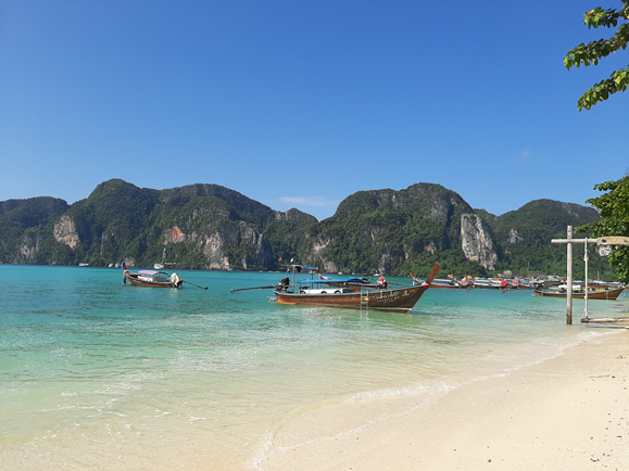 Острова Пхи-Пхи…даже звучит завораживающе! С острова Пхукет туда можно отправиться с групповой экскурсией (человек 30) либо самостоятельно на пароме. Для самостоятельной поездки необходимо добраться до пирса Рассада (такси обойдется 800-1000 бат) и купить билет на паром до пирса Тонсай на Пхи-Пхи Доне (от 700-1400 бат). А дальше найти себе подходящее жилье и уже самостоятельно отправляться обозревать окрестности. Но я расскажу о групповой экскурсии в ноябре 2020 года, которая оставила яркие и насыщенные эмоции о Пхи-Пхи. Итак, как это было… Заказали экскурсию на phyket-cheap-tour.ru (за 2900 бат на человека), на следующий день в удобное для нас время курьер привез ваучер и забрал деньги. На следующее утро приехал минивэн и мы отправились на пирс, ехали около часа. Там нам предложили кофе и печенье, затем раздали браслеты каждой группе и закрепили гида. Кстати именно там можно взять на прокат ласты за 200 батт, советую брать, если хотите попытать удачу и увидеть тигровую акулу. Мас