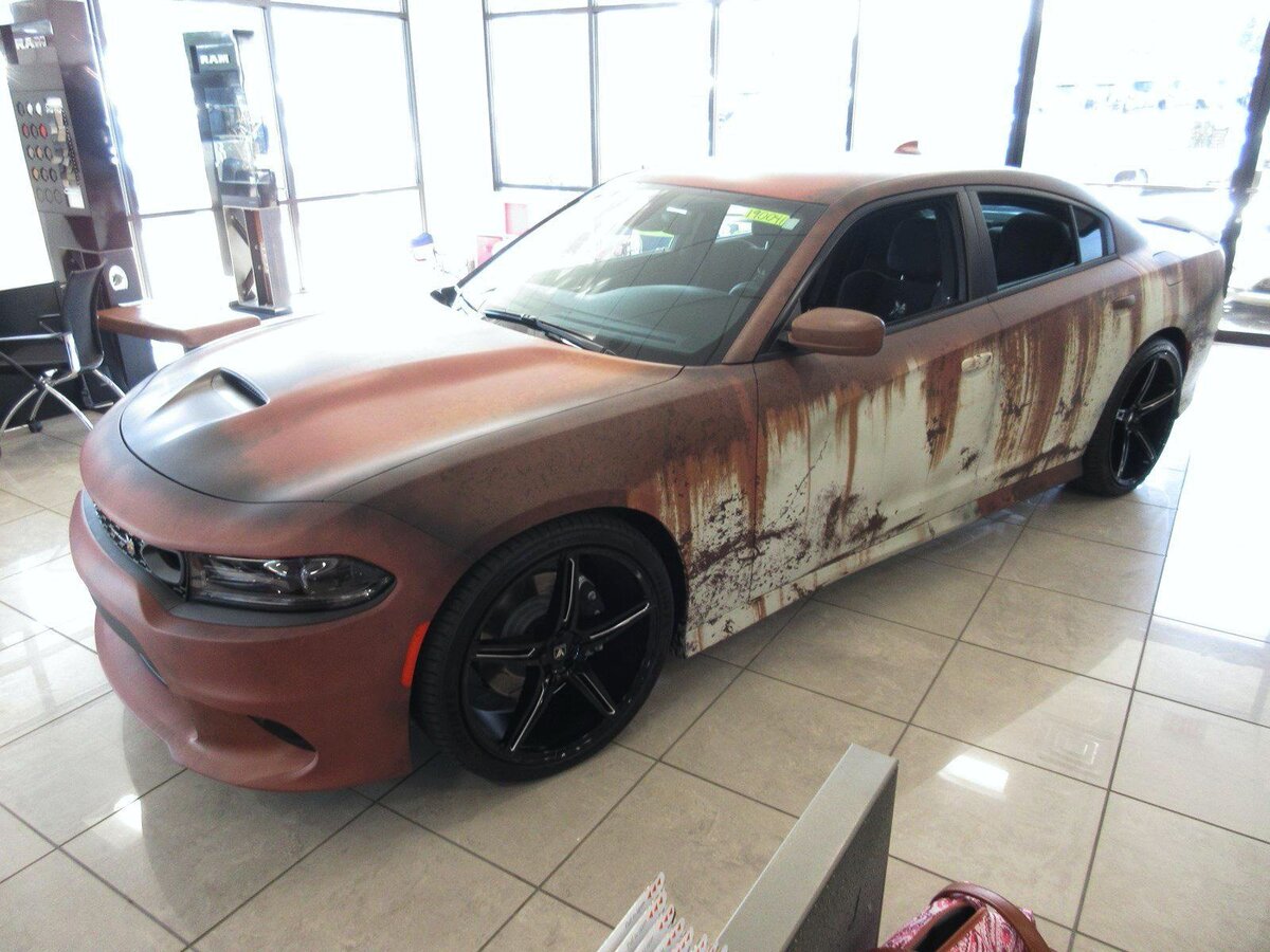 Официальный дилер марок Chrysler, Dodge, Jeep и RAM выставил в автосалоне американского Спартанберга необычный Dodge Charger 2019 года, который отпугивает покупателей своим ржавым видом. На самом деле это абсолютно новый автомобиль и кузов у него не гнилой, а просто обтянут винилом, который призван искусственно состарить облик седана. Официальные дилеры и вовсе говорят, что запечатленная на фотографиях четырехдверка из "специальной серии на случай зомби-апокалипсиса". При этом не стоит забывать, что если покупателя текущий вид машины не устроит, то он всегда может ободрать "ржавую" пленку с кузова, тем самым вернув автомобилю стандартный вид. Под винилом же скрывается Dodge Charger в исполнении R/T Scat Pack, в движение который приводит 6,4-литровый двигатель HEMI V8, развивающий 485 л.с. и 644 Нм. С таким мотором переднеприводный седан способен ускоряться с 0-60 миль/ч (96 км/ч) за 4,3 секунды. В автосалоне за данный Додж Чарджер просят 37 999 долларов (около 2,4 млн рублей). Это вес