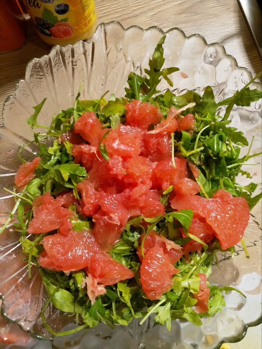 Салат с рукколой, креветками и грейпфрутом. Gluten free
