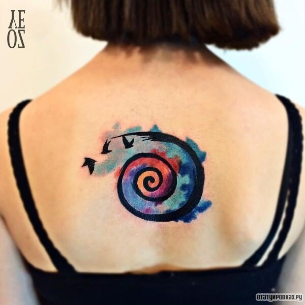 Татуировка, изображающая спираль, символизирует бесконечность, цикличность и связь со Вселенной. Изображение спирали на теле выглядит минималистично, но в то же время стильно и оригинально. Такая татуировка не выглядит вычурно, а наоборот загадочно и лаконично. Носитель такой татуировки обычно человек с философским мировоззрением, интересующийся вопросами бытия и вселенскими загадками. Он изучает естественные науки, уверен в прогрессе человечества, эволюции и в себе самом. Такая личность хочет изменять мир к лучшему и верит, что некоторые шаги к этому ей самой по силам. Изображение спирали обозначает цикличность всего, бесконечное повторение, зависимость высшего и низшего, связь со Вселенной. Носитель такой татуировки черпает вселенскую энергию.имвол спирали олицетворяет золотую середину, сбалансированное существование резких противоположностей, гармонию добра и зла. Татуировка, изображающая знак сжатой спирали, несет информацию о богатом энергетическом запасе своего носителя.