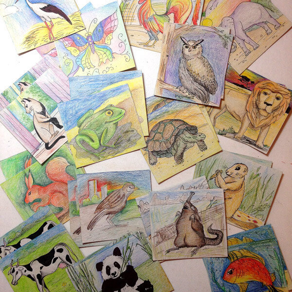 Любая мама хочет, чтобы ее малыш развивался. Но не все знают как правильно играть с ребенком, чтобы игры приносили не только радость, но и пользу. Отличным решением может стать изготовление карточек с изображениями разных животных. Помимо самого процесса работы над материалом, можно придумать огромное количество вариантов их использования. Причем, играть в эти игры будет интересно и грудничку и дошкольнику. Итак, начнем. Для начала, определимся с материалами. Нам потребуется белый картон (можно купить набор для детского творчества формата А4), ножницы, линейка, клей канцелярский (ПВА лучше не использовать), широкий скотч (или клейкая прозрачная бумага) и карандаши или краски (как вариант – цветной принтер). Не забудьте запастись терпением и временем. Вырезаем четное количество картонных квадратов (10-20) размером 9х9 см. Теперь необходимо определиться с животными. Все зависит только от вашей фантазии! Это могут быть домашние, дикие, морские или сказочные животные. Количество карточек