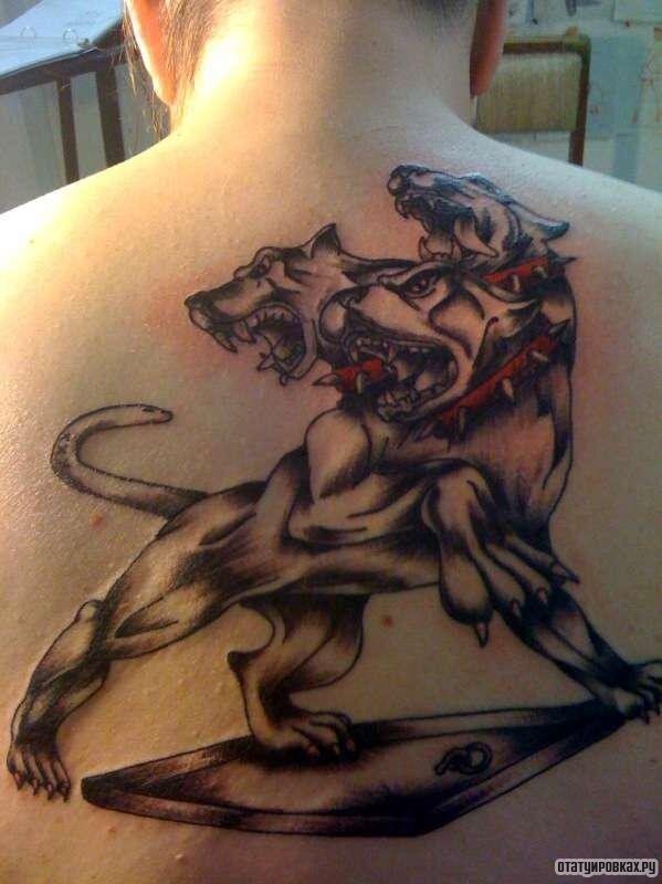 Изображение цербера означает, в первую очередь, смелость, упорство, агрессивность, сильную волю, жесткость, верность своим идеалам, веру в мистику, проницательность, пытливость и изворотливость ума и безжалостность. Со школьных времен каждому известно, что это за мистическое существо, являющееся одним из самых популярных и ярких среди персонажей мифологии древних греков. Выглядит Цербер как свирепый пес огромного размера, имеющий три головы и хвост в виде ядовитой змеи. Внешний вид его был настолько ужасен, что вводил в лютый страх каждого, кто его увидит. Изображали Цербера с огненными глазами и пастью, полной ужасных клыков, что многократно усиливало кошмарное впечатление. Цербер стоял на входе в преисподнюю и его задачей было следить, чтобы никто из живущих не смог войти туда, а попавшие в ад, не могли пролезть оттуда в мир живых. Он был одним из самых верных прислужников властелина подземного царства Аида и никогда не отходил от адских врат. Пес яростно наблюдал за происходящим н