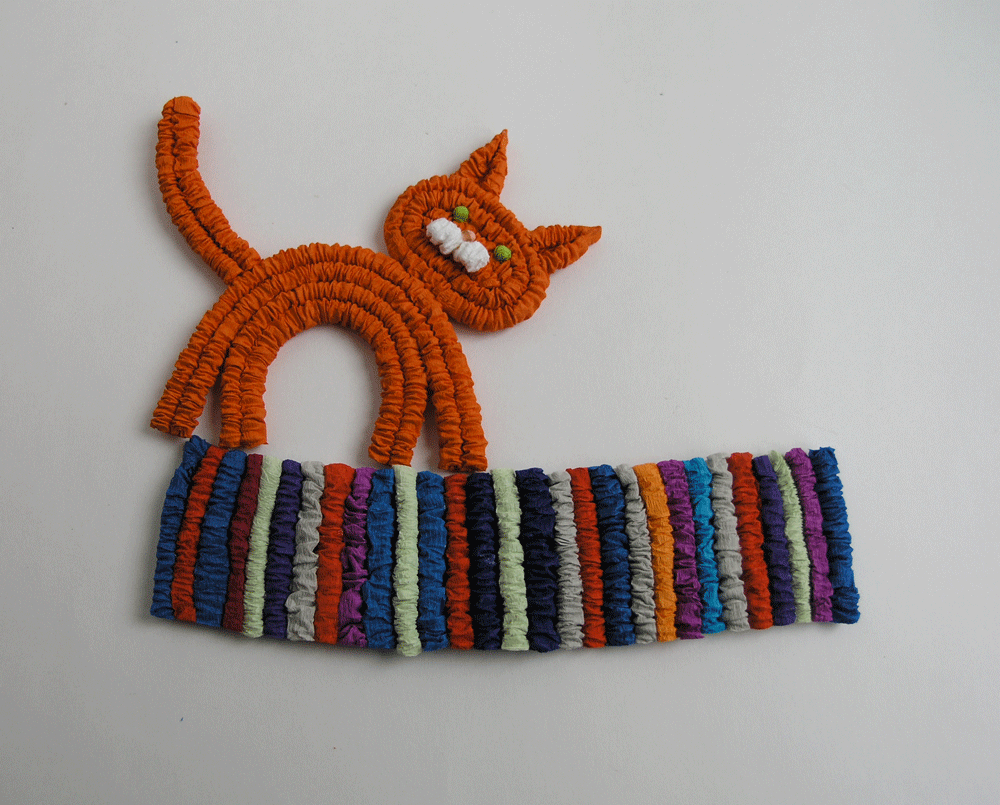 По дорожке Рыжик бежит, в уголочке мышка шуршит. Сделаем котика! Скрутим четыре гофротрубочки. Изогнём две трубочки дугой. Склеим трубочки посередине. Подровняем лапки. Сделаем котику головушку. Отрежем от трубочки третью часть. Длинный отрезок свернём в кольцо. Наши трубочки похожи на пружинки, склеить кольцо не просто! Подержите колечко в руках подольше, пока клей не схватится. Маленький отрезочек будем заправлять в серединку. Головушка готова. Из четвёртой трубочки сделаем ушки и хвост. Отрежем треть трубочки, разрежем её на одинарные. Сложим одинарные трубочки в уголки. Приклеим ушки. Приклеим котику головушку и хвостик. Сделаем из маленькой белой трубочки подушечки, скатаем бусинки-глазки и носик. А из разных отрезочков гофротрубочек склеим котику коврик. Отрезочки можно приклеить к полоске бумаги, а потом подровнять по краям. И сделаем нашему котику подружку! Как сделать гофротрубочку Бумага для гофротрубочек
