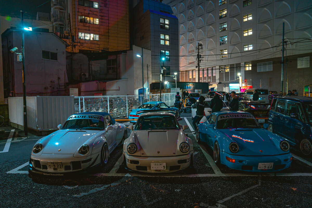 Как вы уже узнали, мне очень нравится Япония, почти так же сильно, как Porsche. Но какие из них самые лучшие? Наверное те, над которыми поработал Накай-Сан, отец тюнинга RWB. Накай-Сан перебросил эту широкую вечеринку через несколько небольших общественных парковок, так что в итоге получились небольшие карманы автомобилей RWB, разбросанных между микроавтобусами, гибридами и автомобилями kei . На самом деле это сработало очень хорошо, потому что вы видете, насколько помешаны эти RWB фанаты, когда они припаркованы рядом с Honda Civic, вы не увидете подобного ни на одних автомобильных мероприятиях. Тем не менее, мероприятие все еще воспринималось как автомобильная выставка из-за огромного количества людей, снимающих видео и фотографирующих. Это было довольно беспокойно, поэтому примерно через час мы уехали и направились за едой к парням из CSF и Rywire. На обратном пути в Токио я обработал то, что мне больше всего нравится в автомобилях, и впечатляет. Это всегда сводится к одному: поездка