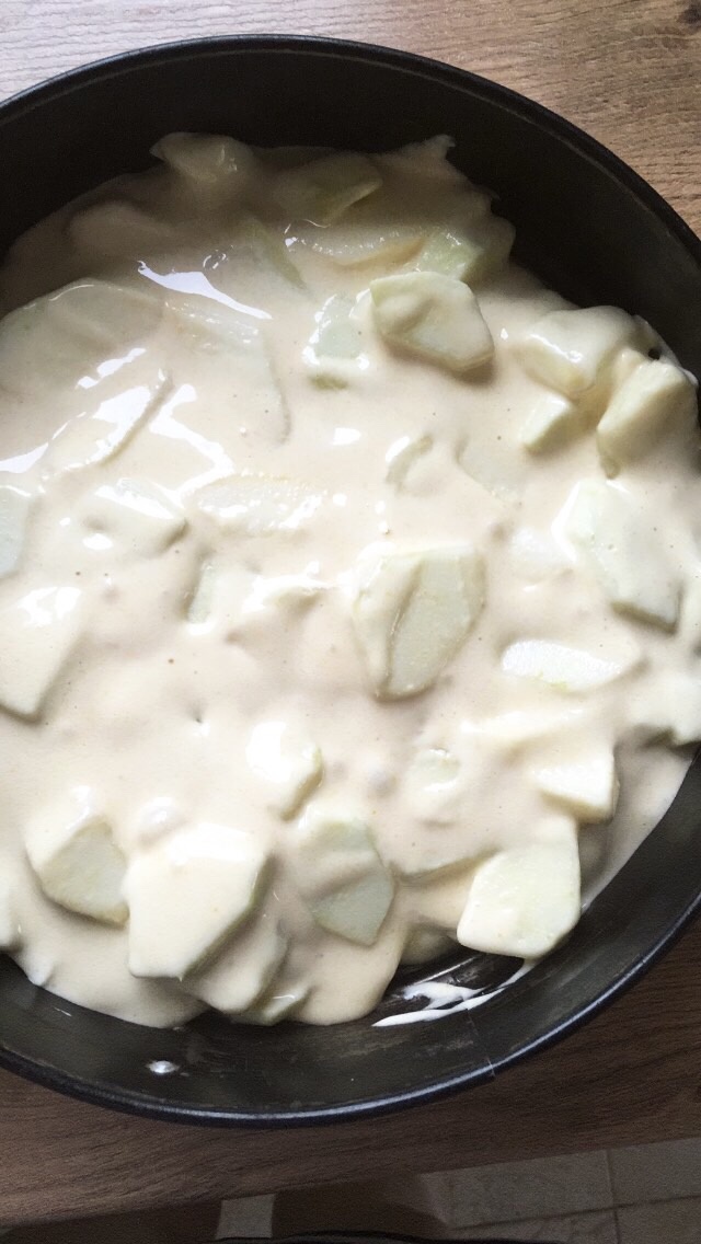 Яблочный пирог получился как будто с лепестками... Сегодня очень захотелось выпечки с яблоком. Очень быстрый пирог и очень вкусный. Любите аромат печёных яблок? Или свежего пирога с яблоками? Я лично ОБОЖАЮ! ПЕЧЬ ВСЕМ! Яблочный пирог : ✅Яблоки 5 шт. Очистить, порезать на дольки и сбрызнуть соком половины лимона🍋 ✅ В деже миксера взбить 2 яйца и 80 г.сахара до бела! ✅добавить муку 1 стакан(200 мл.) мука пшеничная 1/2 стакана, 1/2 стакана кукурузной муки😋+1 ч.л.разрыхлителя. Взбить на низкой скорости миксера. ✅примешать яблоки к тесту. ✅духовку разогреть до 180 градусов. ✅дно формы(22см) для выпечки покрыть пекарской бумагой. Тесто выложить в форму, разровнять. ✅выпекать 35-40 минут( проверьте на сухую шпажку) Приятного аппетита 💕🍏👌🏼