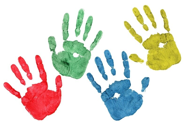 Каждый участник берет лист бумаги и на нем обводит обе свои ладони. При этом одну руку можно обводить только 1 цветом (можно обе руки одним, но нельзя двумя цветами одну руку).