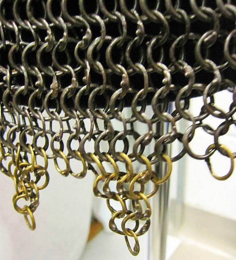 Так уж повелось у нас, что для клепаных кольчуг изначально распространился диаметр из проволоки 1,6*10 (плющеные кольца), и одновременно с этим оказался самым презираемым, вроде как кольца слишком крупные, толстые, тяжелые и вообще... Еще одну чушь приходится периодически слышать - отсутствие в 14 веке в Европе изделий из клепано-сеченых колец. Но послушайте, господа, уже много лет назад всем известна кольчуга, приписываемая герцогу Рудольфу IV Австрийскому (1339-1365), RA IV.700. Рассмотрим ее подробнее. Рубаха состоит из клепаных и сеченых колец: Сеченые кольца: 1 мм толщиной, 12.7 мм внешний диаметр Клепаные кольцаs: 1.2 мм толщиной, 12.7 мм внешний диаметр На рукавах проволока тоньше (0.8 мм) и диаметр меньше (12.2 mm) Представляю вашему вниманию еще одну кольчугу (купленную евреем у древней итальянской семьи в местечке Сенигалия, рядом с Болоньей ), датируемую ранним 14 веком из клепаных и сеченых колец. Причем присутствуют клепаные и сеченые кольца из бронзы, формирующие фестонча