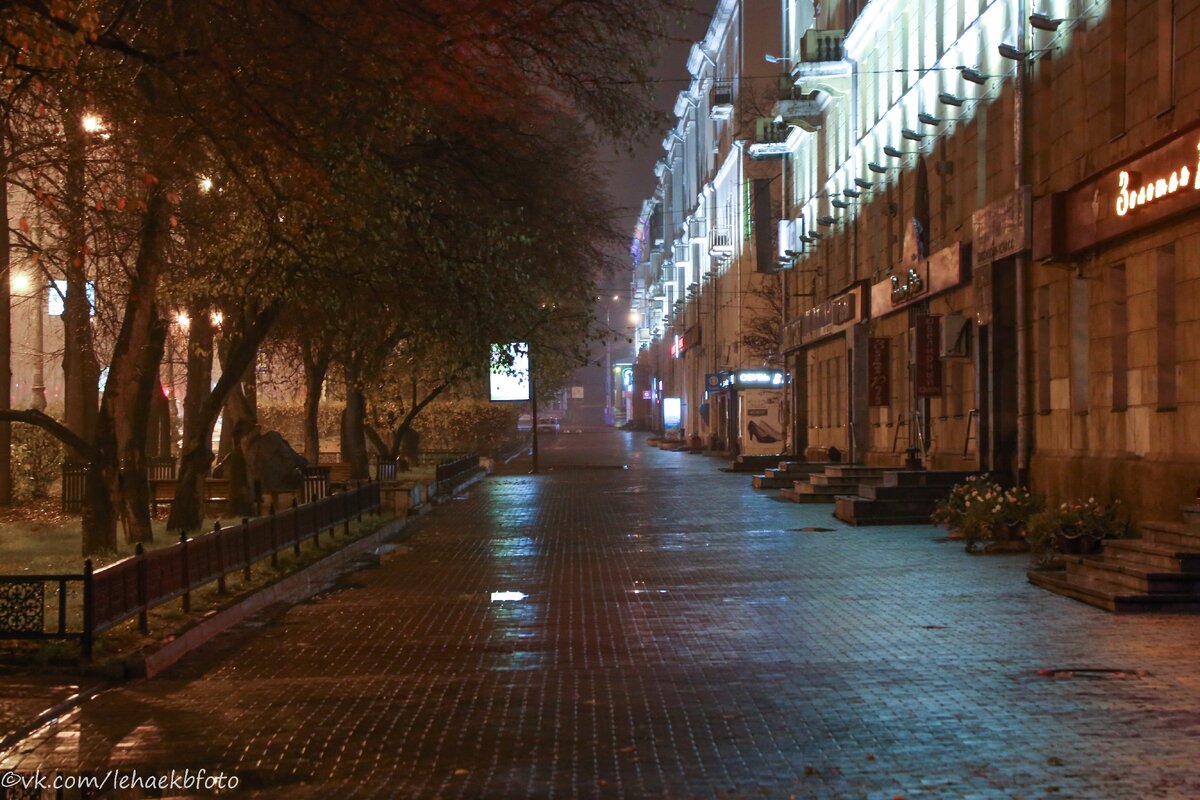 Ночная пустота. Ночная, я бы сказал, романтическая пустота. Особенно необычно улицы смотрятся под мелким моросящим дождем.