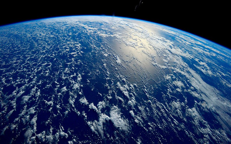 В центре фотографии Тихого океана из космоса можно увидеть немного размытый участок. В этом месте Солнце отражается от гладкой воды океана.