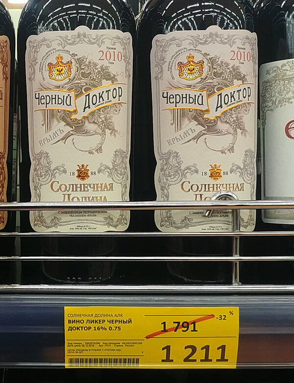 Как появилось, откуда взялось, кто придумал - там есть все ответы. Но была и куча вопросов, где купить. Дело в том, что вино выпускается из редкого сорта винограда, урожай небольшой и количество бутылок действительно ограничено. Поэтому с радостью делюсь адресом магазина, где мы видели "Черный Доктор" вчера: