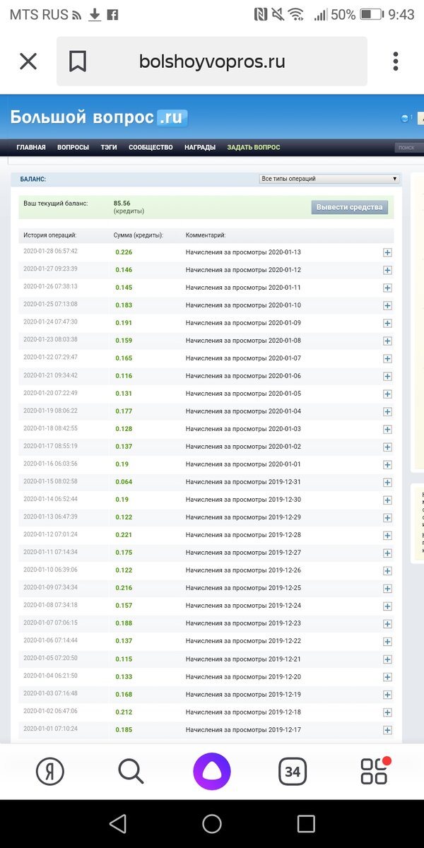 Зароботок на сайте большой вопрос Добрый ! 3 года назад я зарегестрировалась на сайте большой вопрос, Основная задача задавать вопросы, которых ещё нет на сайте(повторы не разрешаютсяразрешают я, за них штрафуют) и отвечать на вопросы остальных участников. Плюс этого сайта состоит в том, что даже если вы не активны какое то время, не заходите на сайт, а люди сиотрятсмотрят ваши ответы и вопросы, вы все равно получаете копеечку. Понятно, что чем больше вопросов вы придумаете и дадите ответов, тем больше впшваш заработок. Я редко захожу на сайт, но оплатить мобильную связь я могу. Регистрация несложная. Чтобы зарегестрироватьсязарегистрироваться надо пройти по ссылке http://www.bolshoyvopros.ru/#fr=db72a8f10b&rg=1