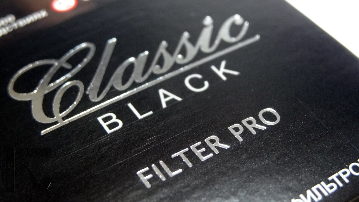 Сигареты этого бренда вышли как на национальный, так и на российский рынок в самом начале 2010-х. Сейчас "Classic" представлен в трёх сортах: Black, Gold и Ultima и предлагается в форматах long 100's в рамках серии "Slim" и модифицированном формате queen size в серии "Filter Pro". В отличии от стандартного QS сигареты серии "Filter Pro" чуть длиннее (на 2-3 мм.) и меньше по диаметру (буквально на 1 мм.). Вот крепкий, чёрный вариант "Filter Pro" и будем сегодня пробовать.
