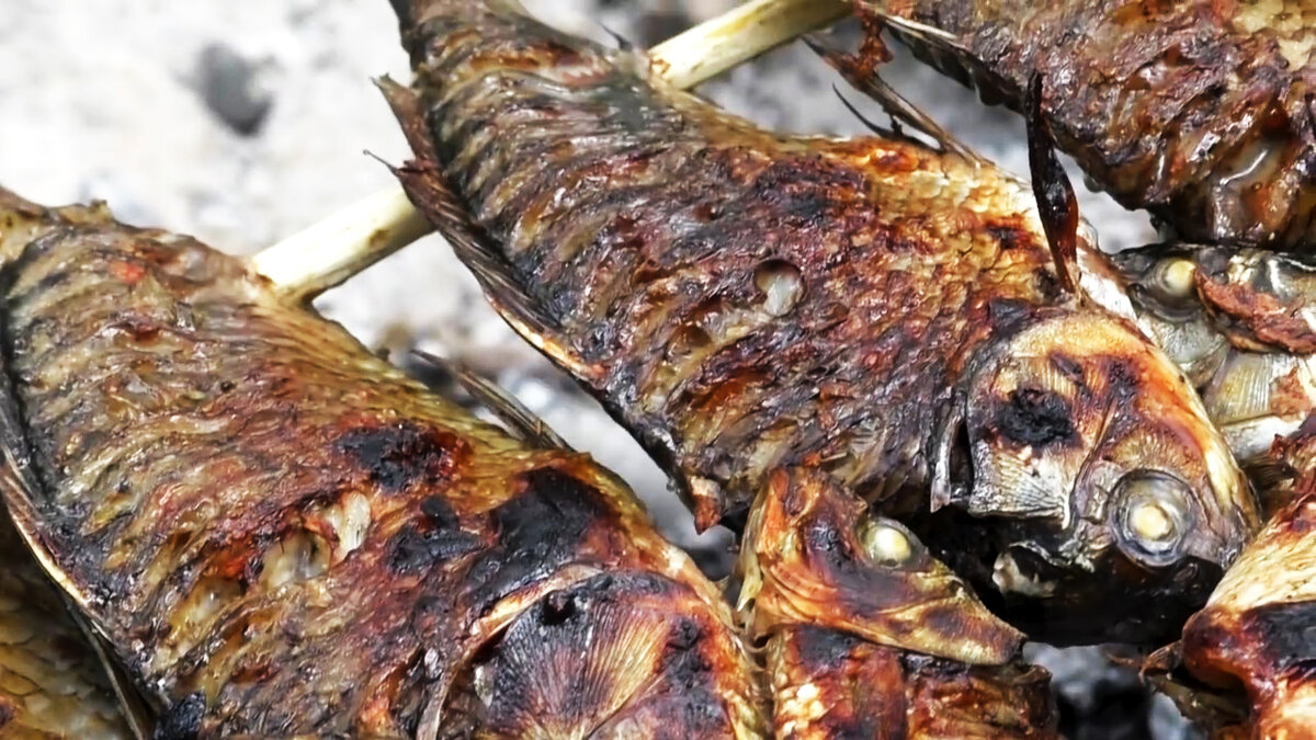 Рыбы наловили много и нам захотелось ее не просто пожарить на сковороде, а приготовить, как-то по-особому. И тут же в голову пришел вариант с запеканием на веточках.