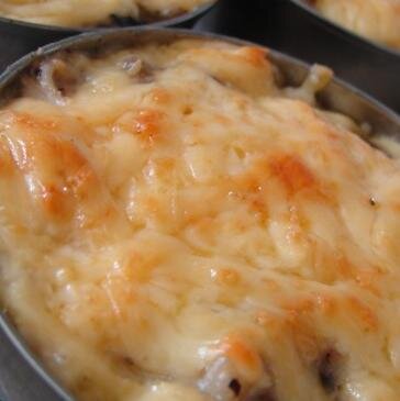 Варим грудку куриную. Лук и шампиньоны мелко режем. Лук обжарить, добавить грибы и продолжить жарить. На сухой сковородке обжарить муку (на 400 гр курицы-2 ст ложки муки) 2-3 мин, добавить сметану (на 400 гр курицы-250 гр сметаны) и тушить 3-4 мин. Грудку нарезать мелко. Все соединить и разложить по формам для жульена. Посыпать сыром и в духовку на 180 градусов 20 мин. Жульен тает во рту! Приятного аппетита.