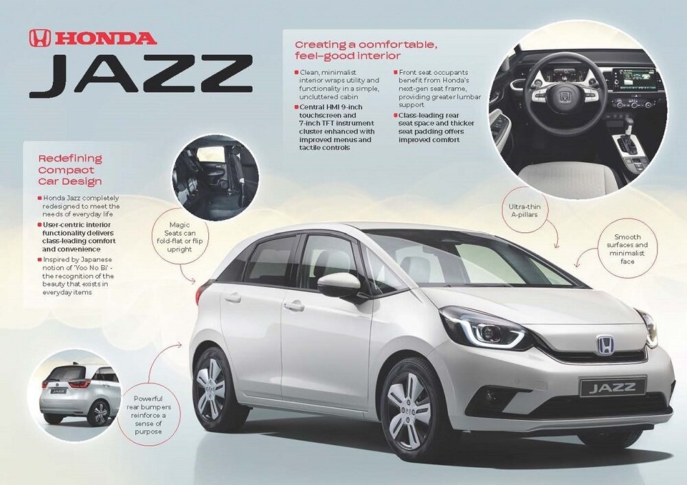 При разработке нового поколения Jazz инженеры Honda полностью переосмыслили культовую модель. В результате автомобиль стал совершенно новым представителем сегмента компактных хэтчбеков: городской Jazz сочетает выдающуюся эффективность с исключительной простотой ежедневного использования и готовностью соответствовать всем потребностям потребителя. Эволюция лаконичного и современного дизайна подчеркнула изысканную простоту форм Jazz. Плавные контуры объединяют укороченную переднюю часть и длинную линию крыши, формируя безошибочно узнаваемый силуэт, сочетающий узнаваемые элементы всех предыдущих поколений. В результате автомобиль дарит своим владельцам выдающийся уровень комфорта и практичности, которые и принесли Jazz всемирную известность и любовь. При переосмыслении образа своего компактного городского автомобиля Honda руководствовалась новой философией дизайна, продиктованной японской концепцией «Yoo no bi», которая превозносит красоту в повседневной жизни. Плавные линии обеспечив