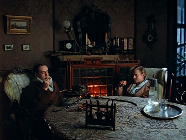 Тем не менее, эта экранизация оказалась удивительно хороша, а Василий Ливанов предстал превосходным Холмсом и выглядел, как и полагается (рост, нос с горбинкой, властность), что помогло его персонажу выглядеть харизматично, даже если чуть-чуть он был менее убедителен в сравнении с Бэзилом Ретбоуном в эпизодах, где требовалось действие (в такие моменты я говорил Чарльзу, перефразируя слова Конан Дойла из рассказа «Скандал в Богемии», что Бэзил Ретбоун навсегда останется для меня Тем самым Шерлоком Холмсом, а для Чарльза, подозреваю, таким всегда будет Джереми Бретт, блиставший в сериале студии «Гранада» в 1970-е годы /2/, в котором были экранизированы все рассказы, как когда-то в сериале 1920-х годов с Элли Норвудом).